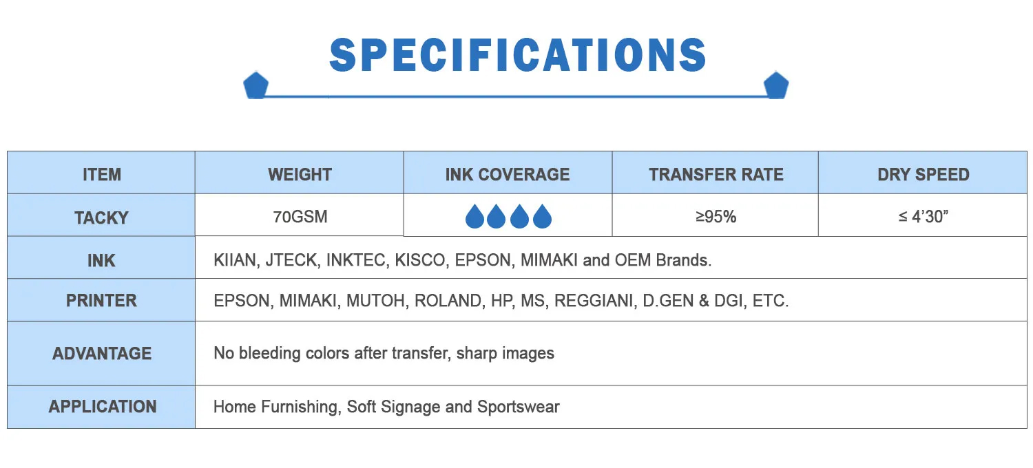 • 70gsm Hi-Sticky Sublimation Paper